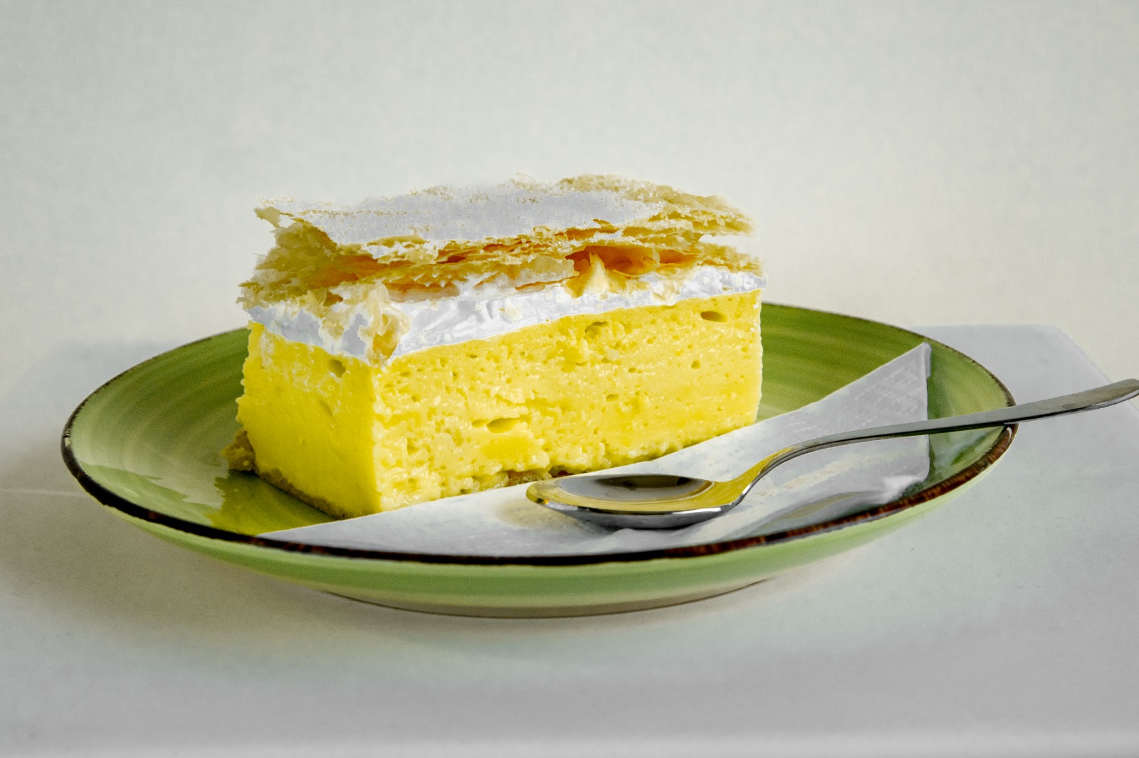Cremes este o prăjitură clasică, cunoscută pentru cremozitatea sa irezistibilă și gustul său fin. Aceasta constă dintr-un blat crocant de foi de patiserie, umplut cu o cremă delicioasă de vanilie, care se topește în gură. Cremes-ul este acoperit cu un strat subțire de zahăr caramelizat, care îi conferă un aspect atrăgător și o notă ușor crocantă. Gustul său dulce, cremos și răcoritor face din Cremes un desert perfect pentru a încheia o masă într-un mod savuros. Este o prăjitură clasică care aduce aminte de aromele și texturile autentice ale patiseriei tradiționale. Cu siguranță te va cuceri cu gustul său rafinat și aspectul său tentant!
